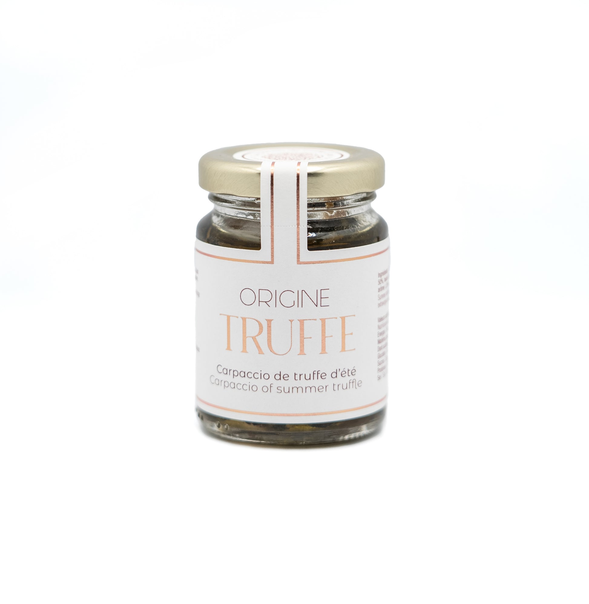 Fabriqué dans le sud de la France, notre carpaccio de truffe d’été (Tuber Aestivum) est composé de fines lamelles de truffe d’été conservées dans de l’huile d’olive vierge extra saveur truffe. Son croquant apporte une texture très agréable à vos recettes.